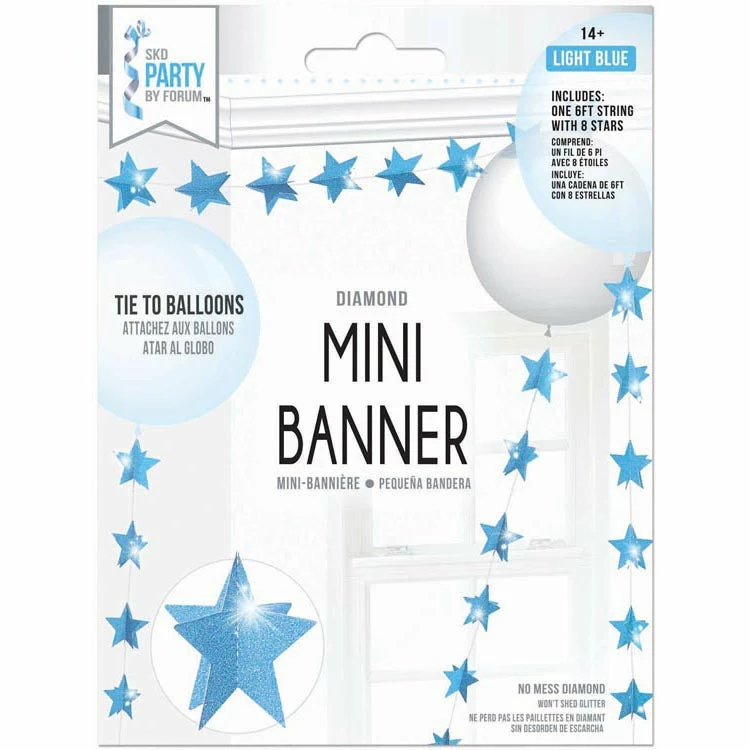 3D Mini Banner Diamond Light Blue Size 6 Ft String – 8 Stars