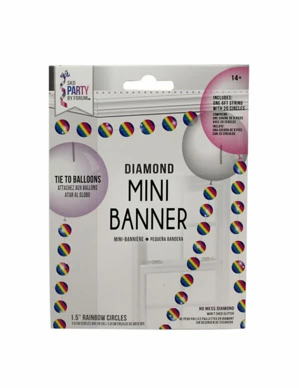 3D Mini Banner Diamond Rainbow Circle 6 Ft String – 20 Circles