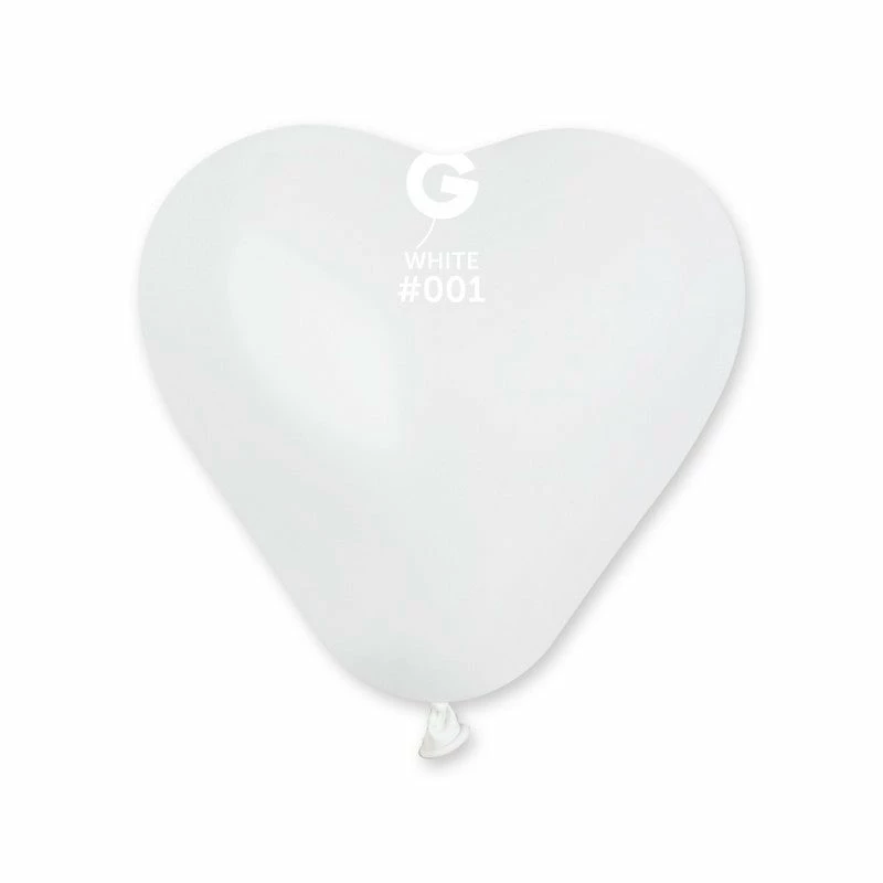 GEMAR Standard Latex Balloon Heart Shape White 100 Pieces 6″